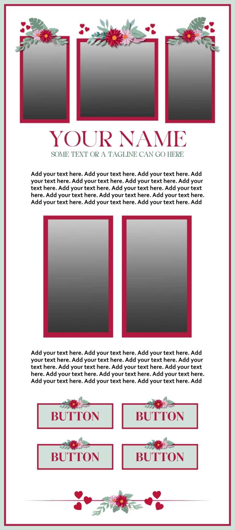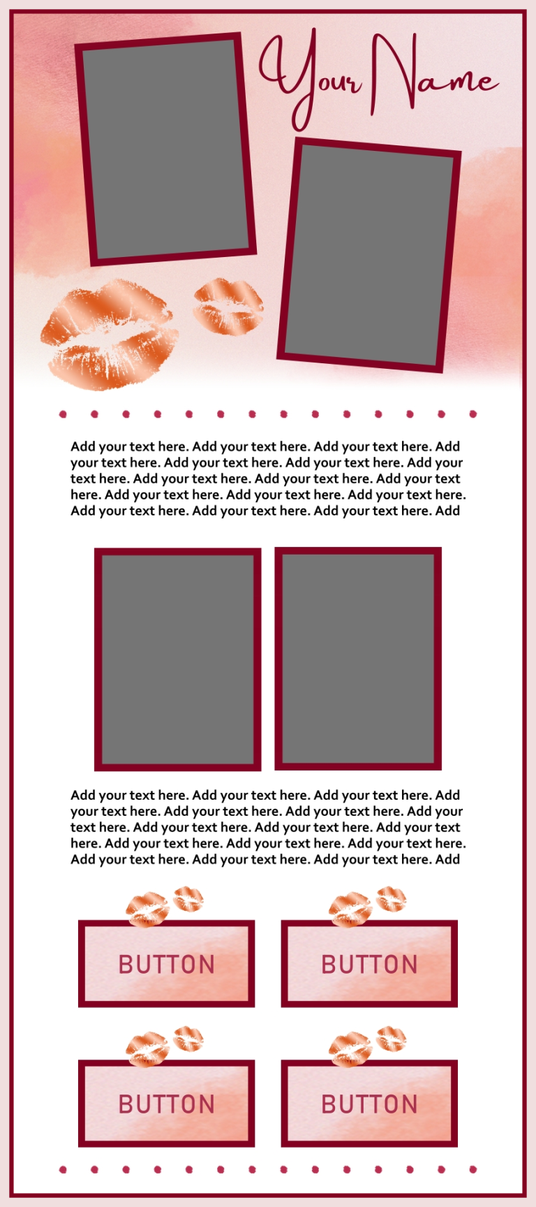 These templates are sold as-is, except for adding additional photos or buttons for $2.00 each if requested at the time of purchase.