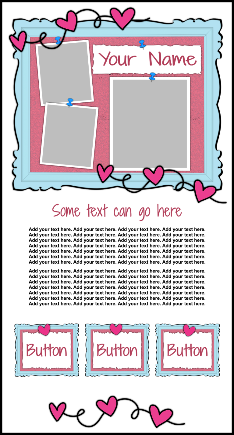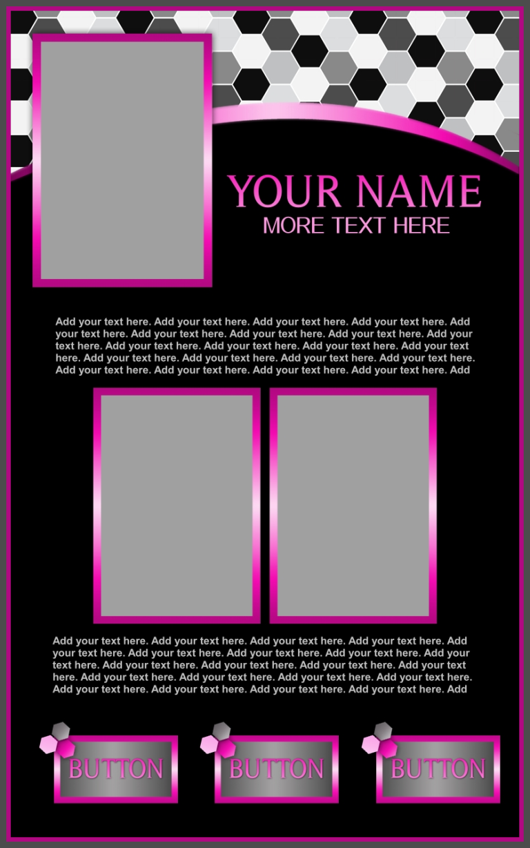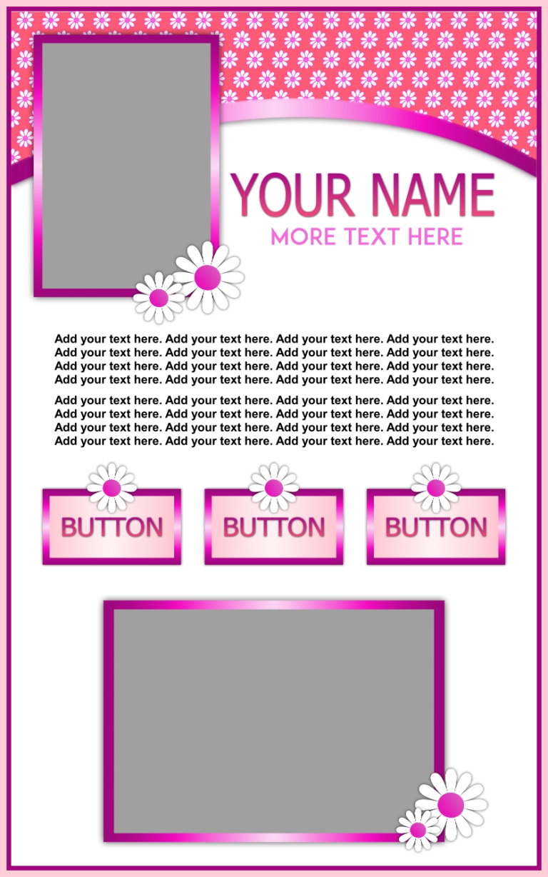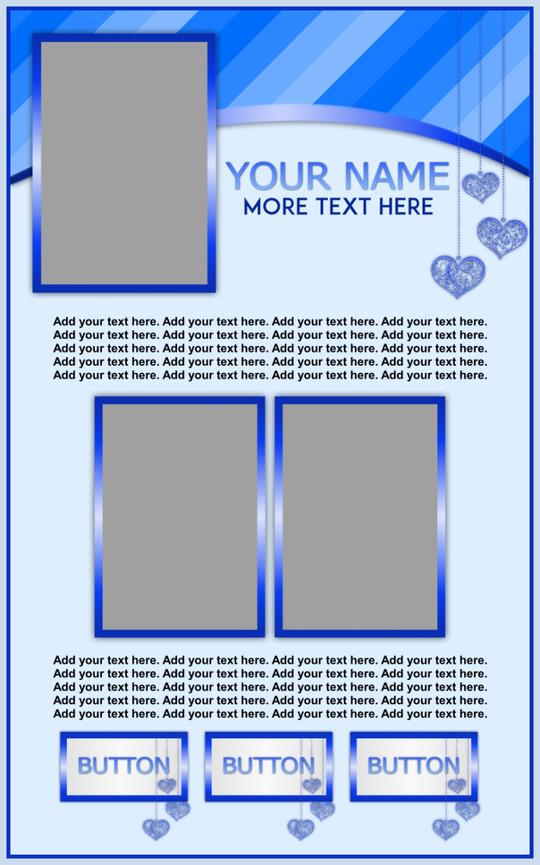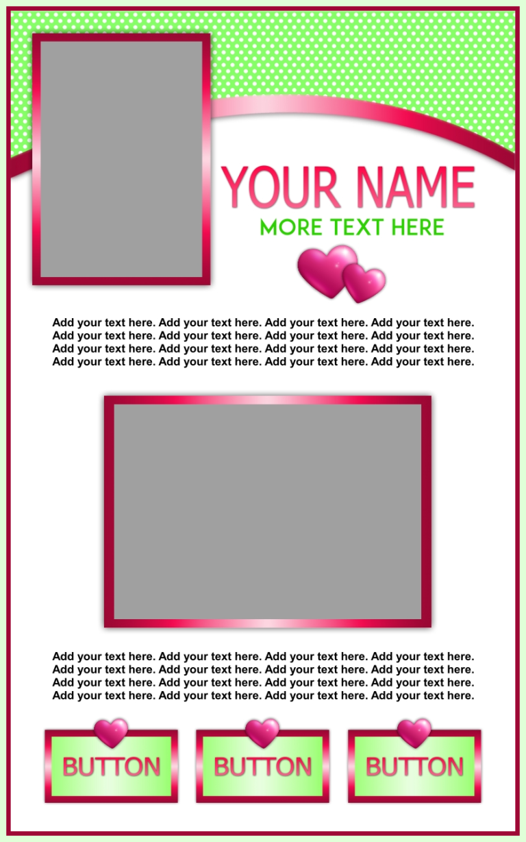 These templates are sold as-is, except for adding additional photos or buttons for $2.00 each if requested at the time of purchase.