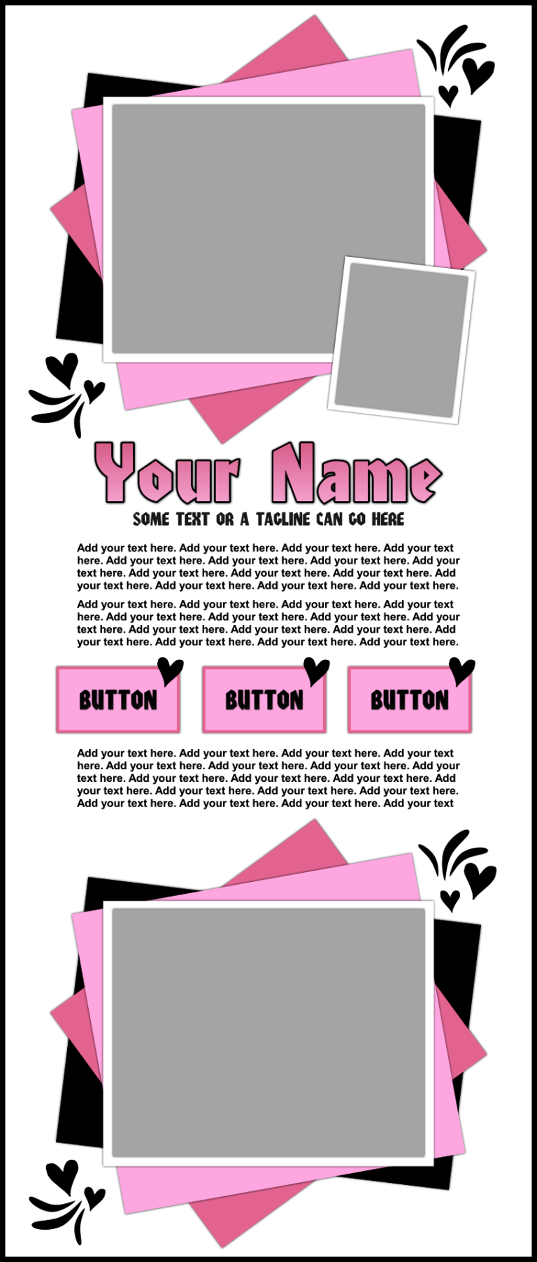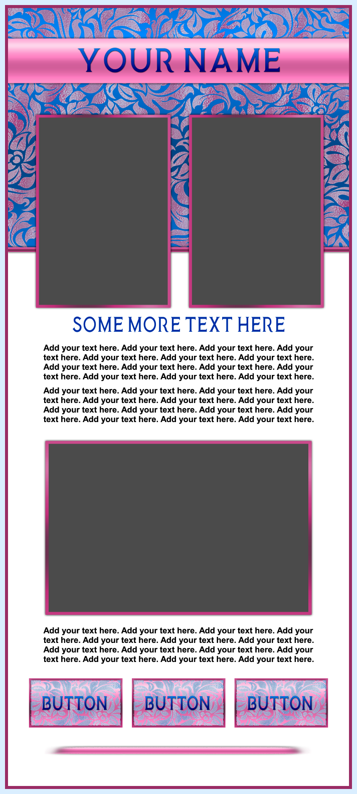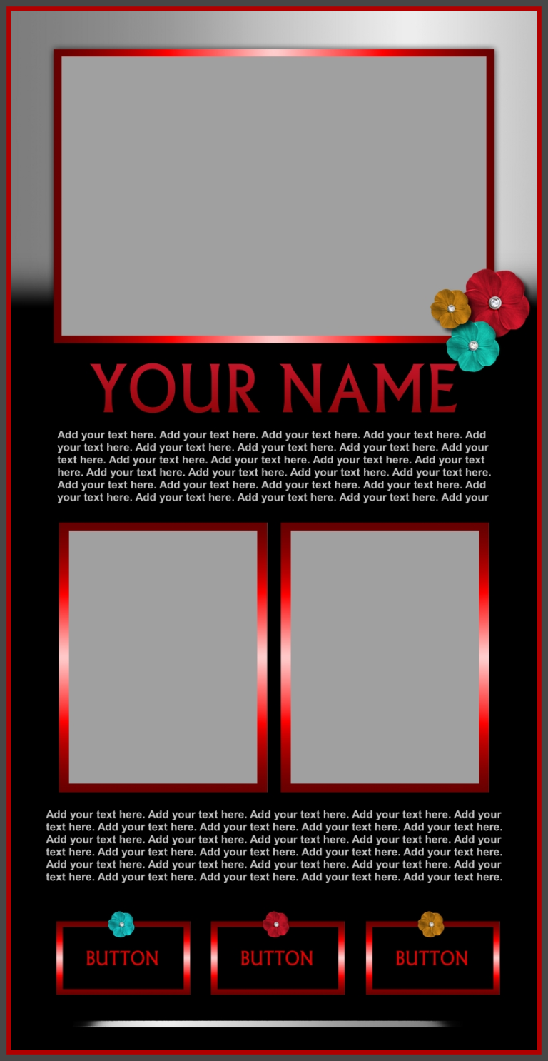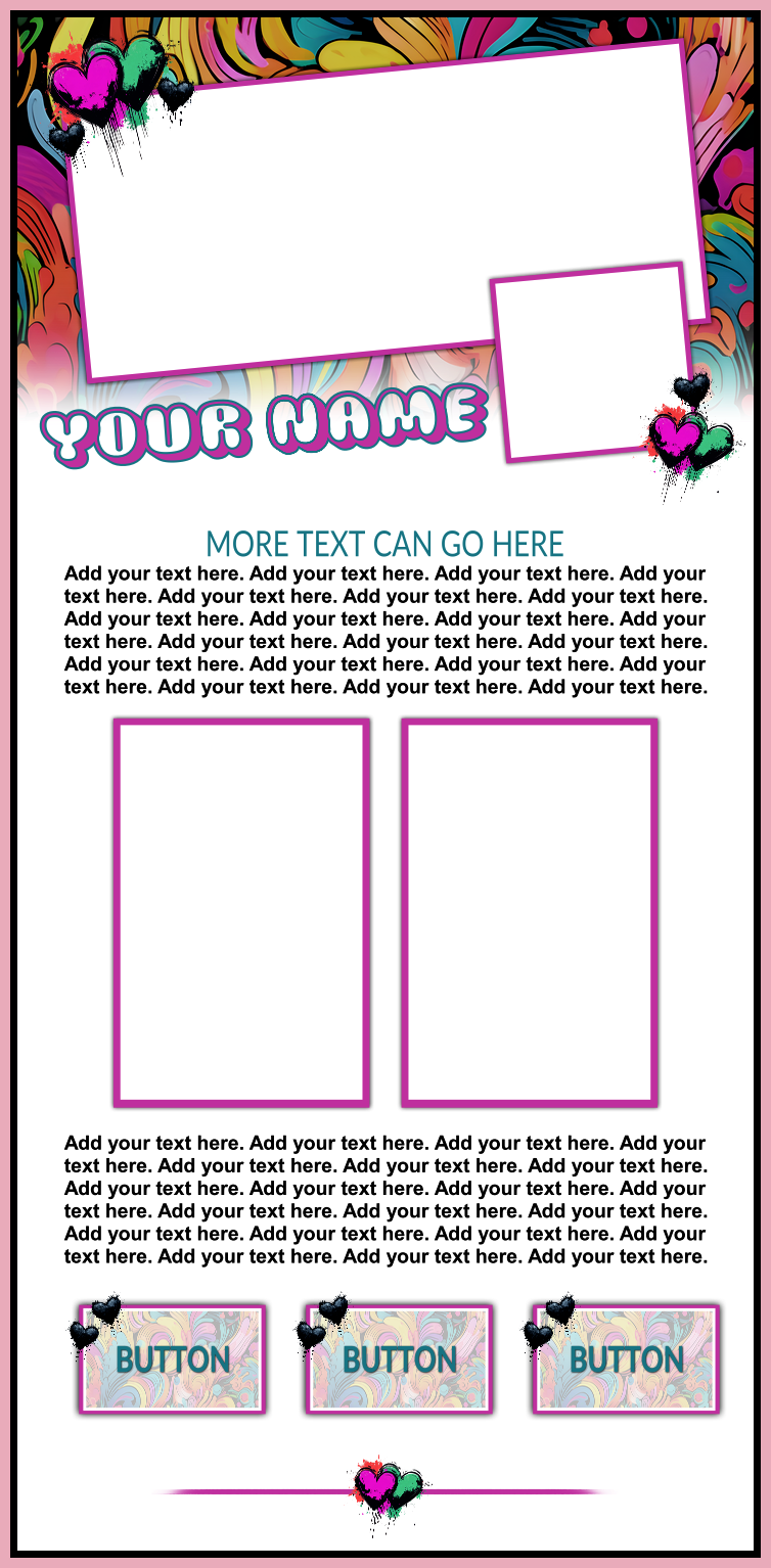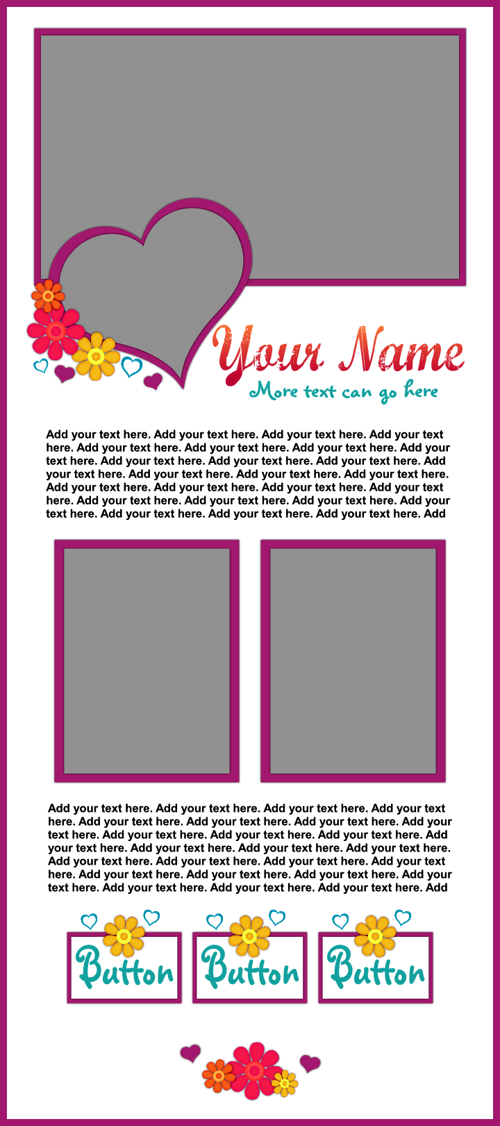 These templates are sold as-is, except for adding additional photos or buttons for $2.00 each if requested at the time of purchase.