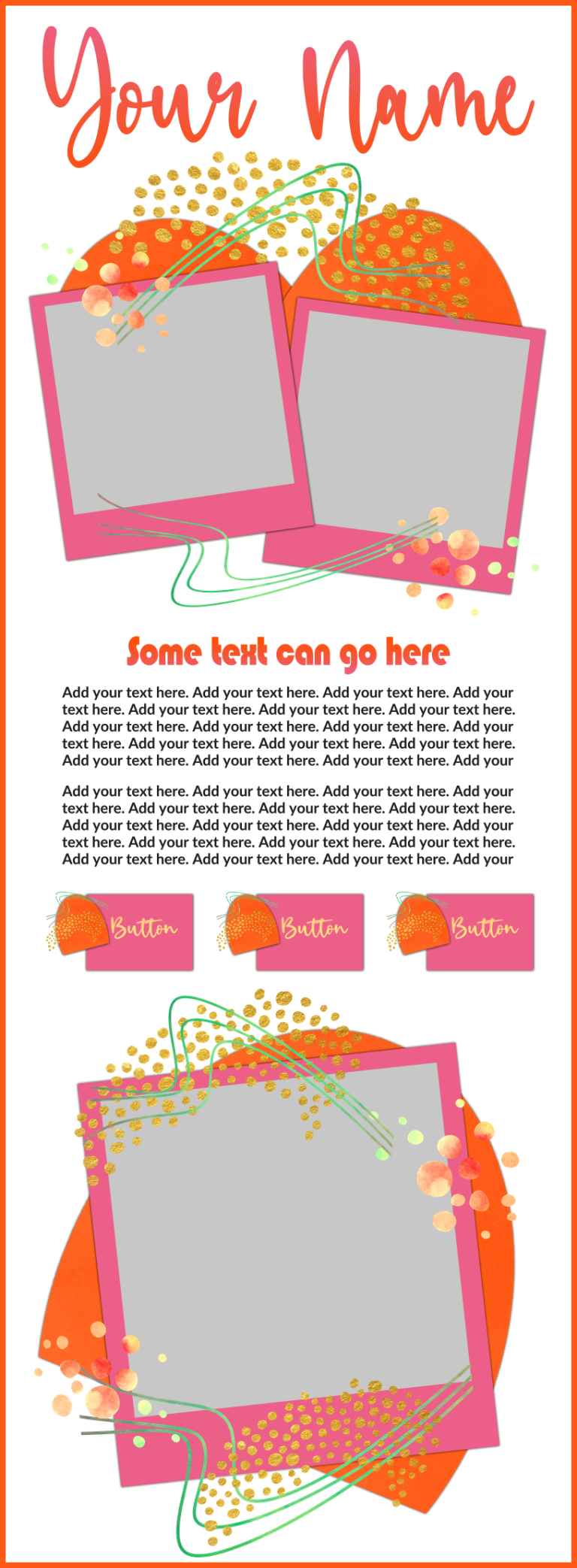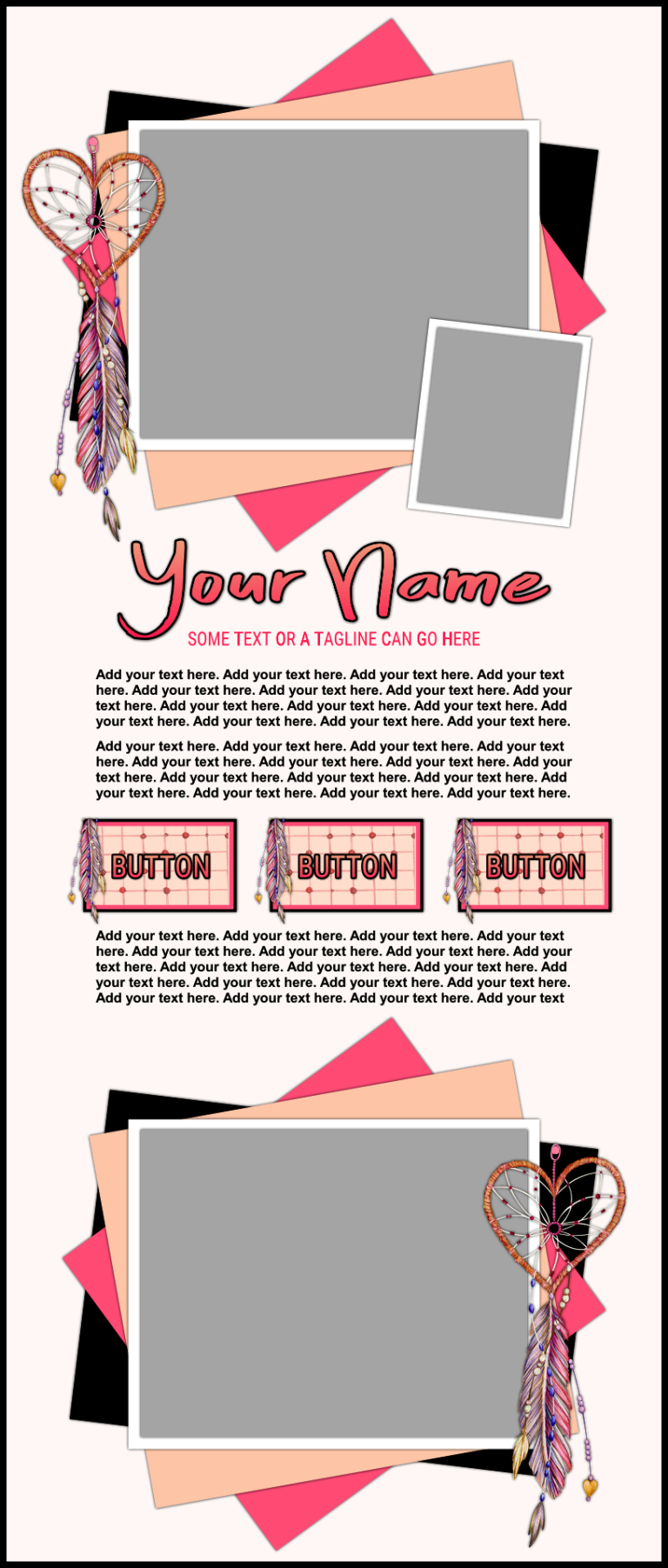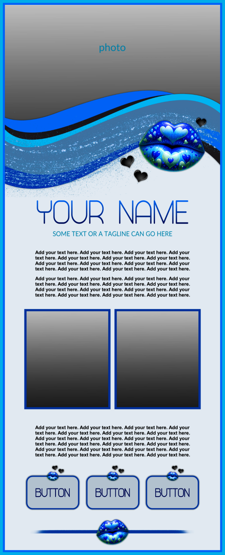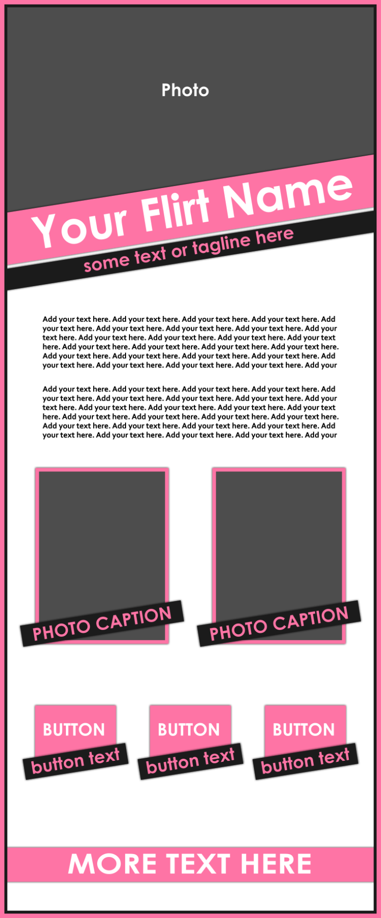 These templates are sold as-is, except for adding additional photos or buttons for $2.00 each if requested at the time of purchase.