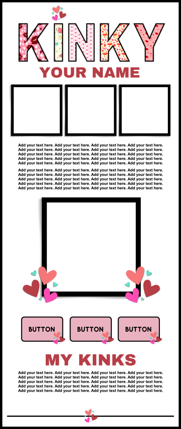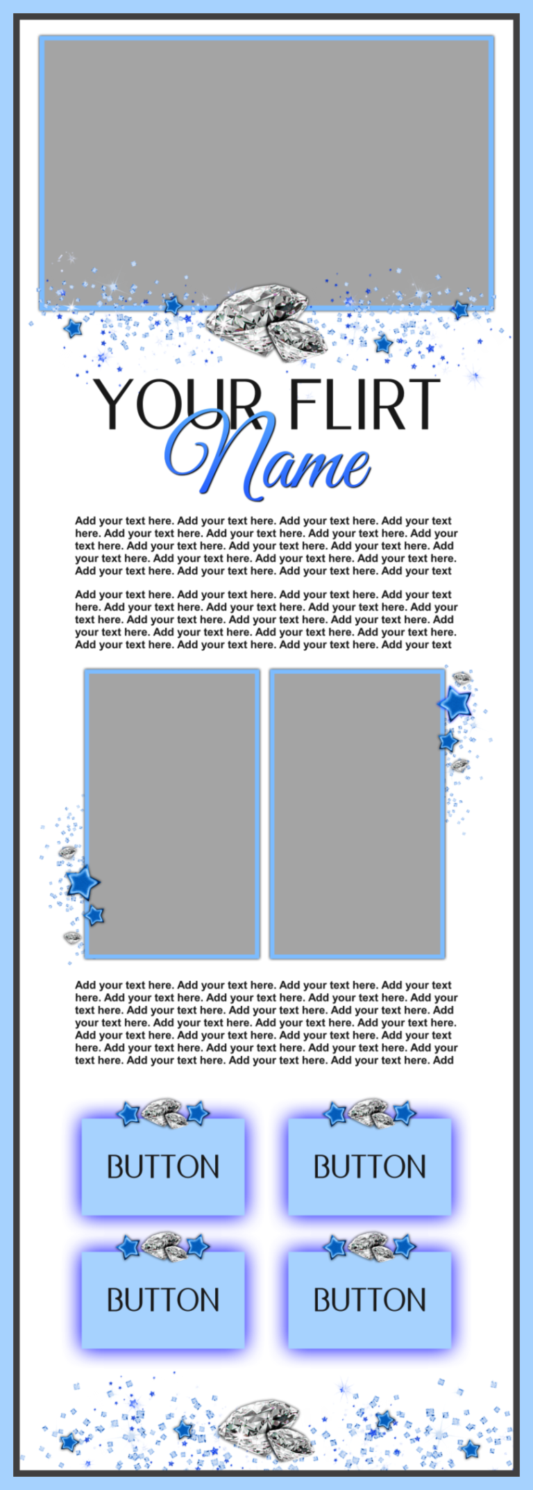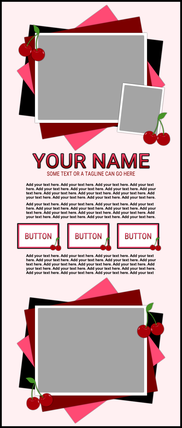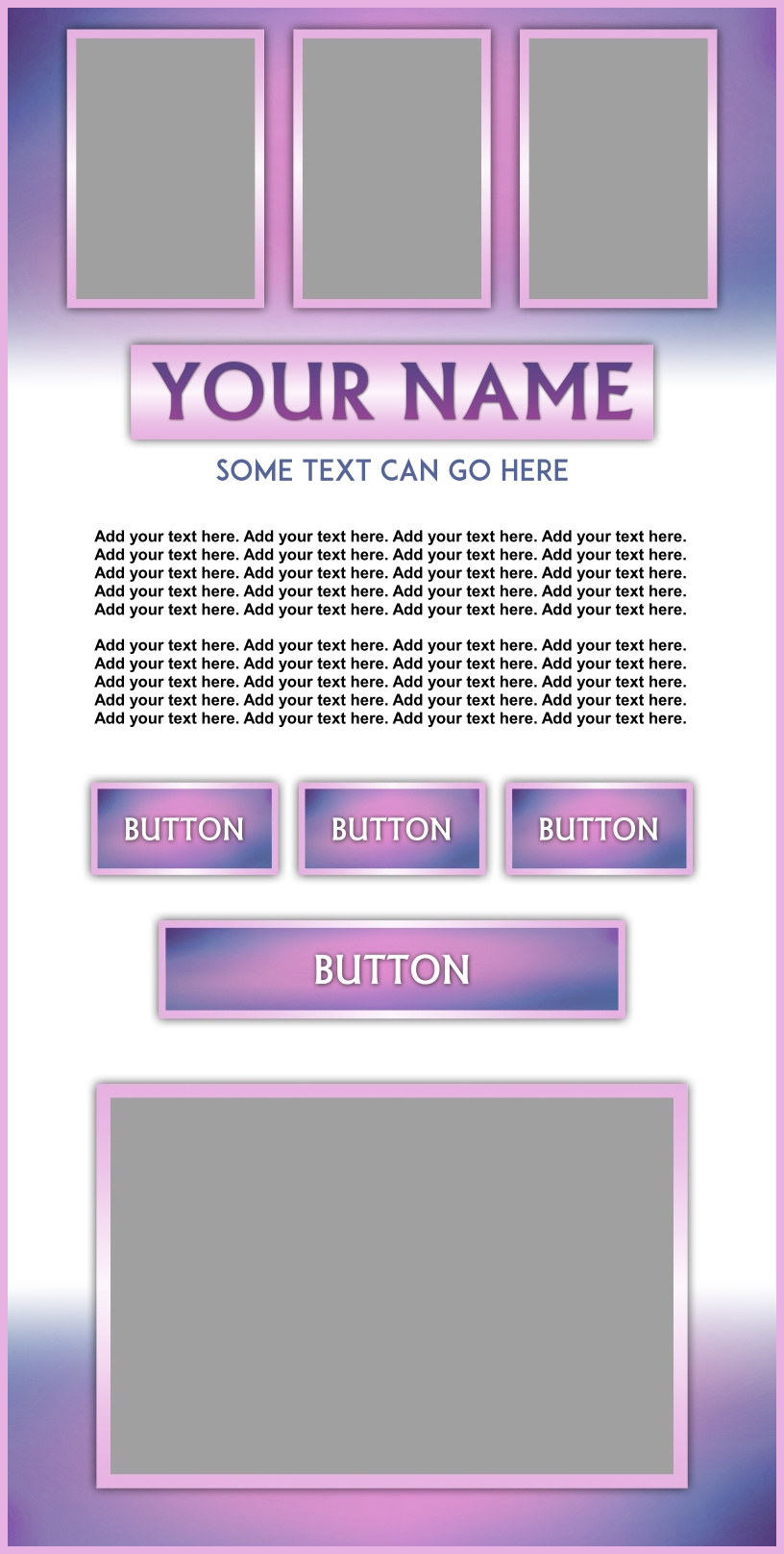 These templates are sold as-is, except for adding additional photos or buttons for $2.00 each if requested at the time of purchase.