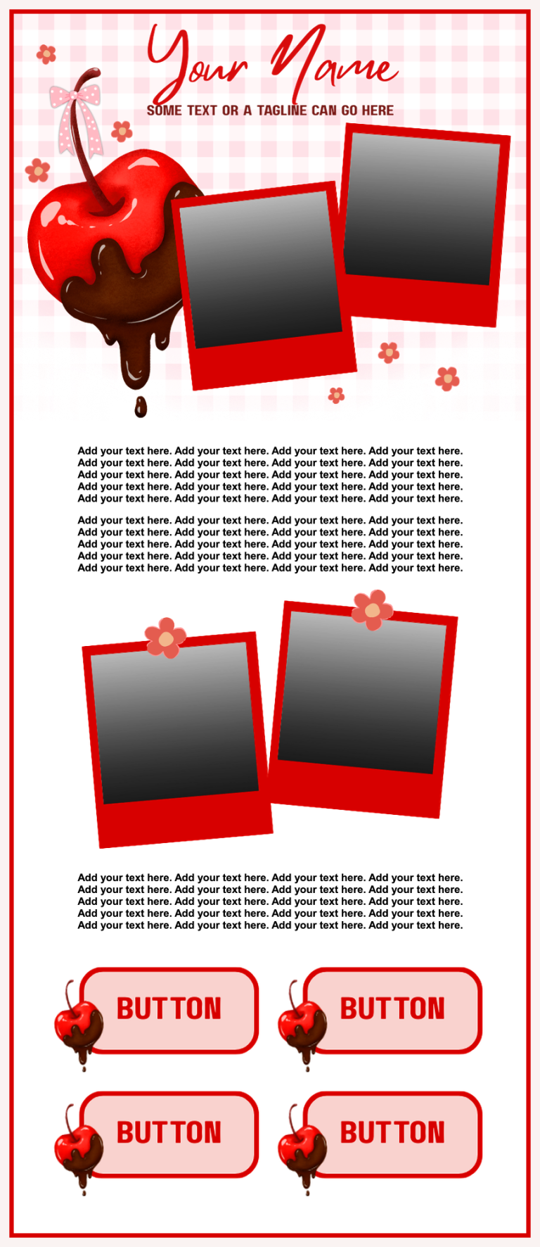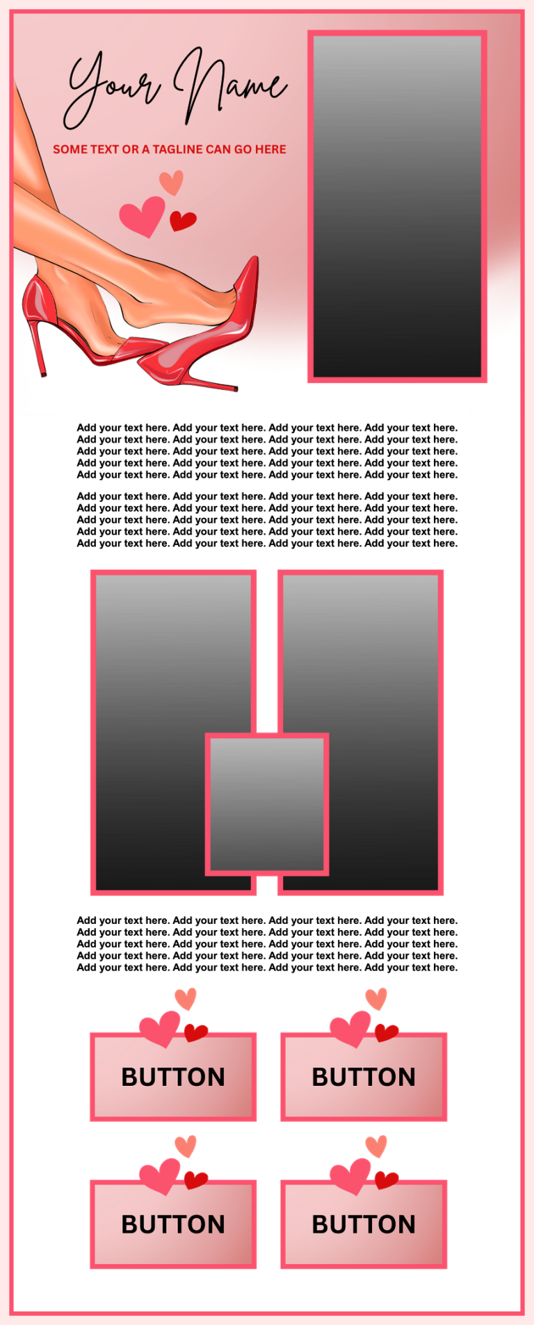 The photos displayed in the template preview are sample images only. They will be replaced with your photos. I can add additional buttons and/or photos for $2.00 each if requested at the time of purchase. Adding them after the template is completed will cost more. Animated buttons will be quoted accordingly.
