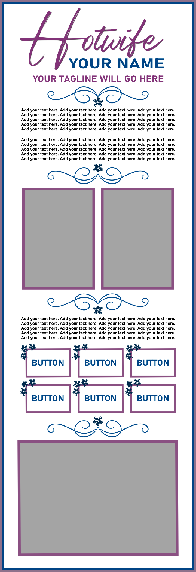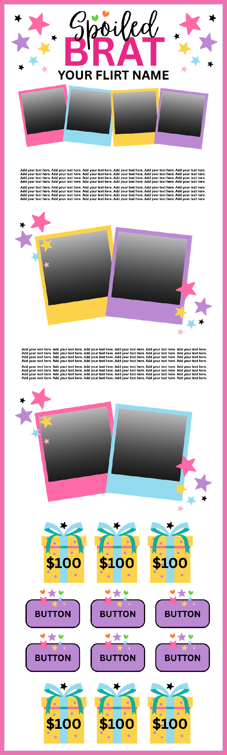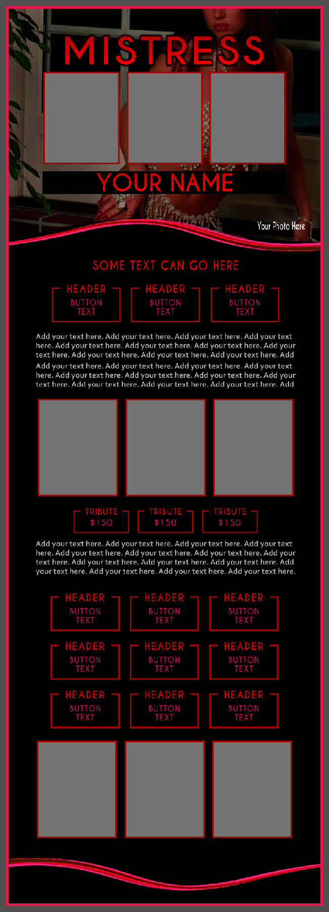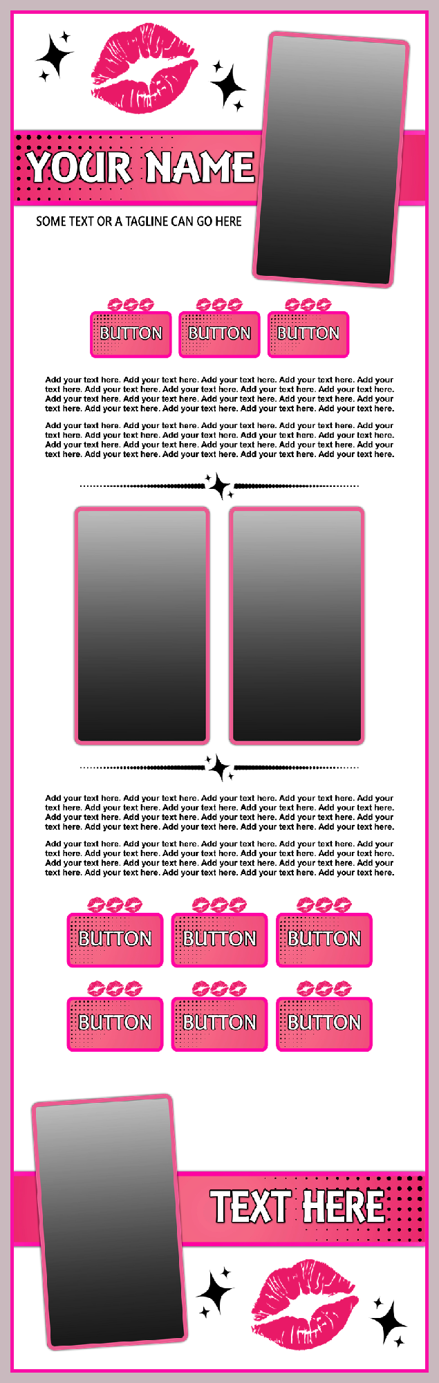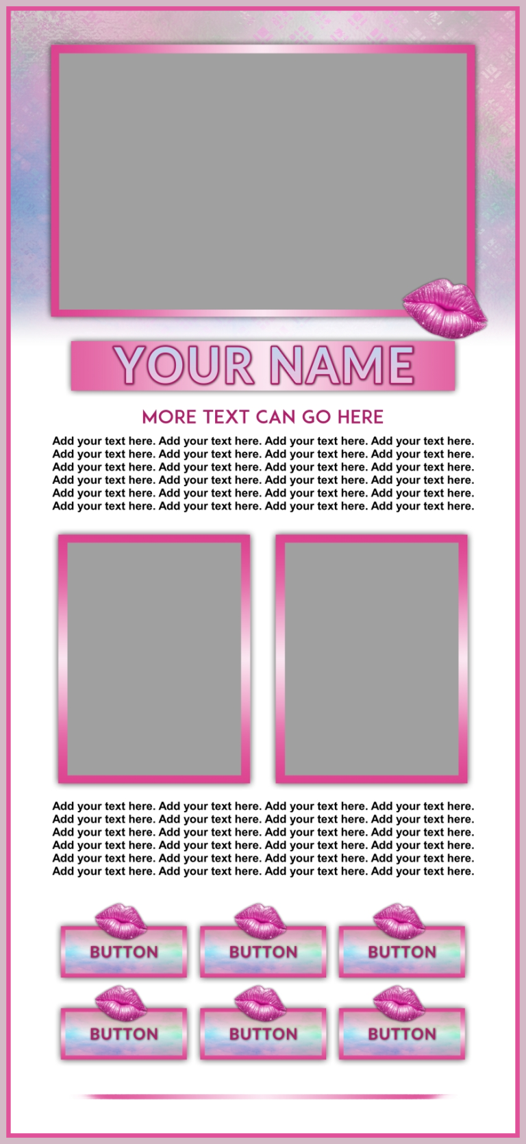 Pre-Made Niteflirt Templates Photos displayed on the template preview are sample images only. They will be replaced with your photos. Additional buttons and/or photos are $2.00 each if requested at the time of purchase. Animated Buttons will be more. SOLD*Black and Bright - $35EXTRA KINKY PRINCESS - $35Submissive Girl - $47Retro Style - $47Brighten Up - $32Mistress Bold - $42Half n Half - $38Girl Next Door - $45Greedy Princess - $48Spoiled Brat - $45Naughty GF - $32T25 - Golden - $25T25 Gold Lips - $25Pinky Peachy - $38Hint of Pink - $42Sexy Lips and Hearts $38Silver Blue - $38Starry Black $38Simple Kiss - $38T25 Blue - $25Layer It 2 - $35Diamond Rows - $45T25 wcDark - $25Painted Daisy - $40celestial sky Red - $38Wild - $42T25 Dots - $25Pink and Gray - $42Celestial Sky Blue - $38Just Simple 1 - $38HOTWIFE $30T25 Boho - $25Silver Pink - $38Mistress Red - $45Pink Glitz $35Peach n Blue $35Heart Swirls - $35Painted Flowers - $40Layer It 1 - $35Grunge Heart 2 - $30Grunge Heart $30just simple 2 - $35Checked - $42Hearts n Stars - $30confessions - $38HOMEWRECKER - $35Midnight purple - $42Pay and Obey - $45Autumn Flowers - $42Sparkle Allure $38Spotlight - $45pm1 - $38SS-Peach Pink - $48Slightly Vintage - $38Silver and Golden $30Glittery Pink - $43PM12 - $38Purple Haze $43Tropical Fire - $38Sweet Pinks $38Purple Bokeh - $38Pretty Blues - $33PM2 $32Daisy Blue $32Hippie Style $35Simply Cherry $30Certified Bad Girl $35PM-Summer Kisses $33PM - Princess Castle $28PM Sensual Mistress $45PM Mistress Pink $38PM5 $35PM Expensive $35PM4 $28Chalkboard Princess $38pm6 $38Your Goddess $35PM Black and Pink $35Graffiti 2 $48Classy Bitch $38Splashed 1 $43PM Lips on Black $35PM15- 1 $35Splashed 2 $43PM Blue Bliss $35Desert Sunset $35Scrappy Style Flower $45sln purple $30PM Blue Abstract Kiss $35sln kiss - $32PM XXX Princess $38sln mint $30sln stars $30Bubblegum Babe $38sln cotton candy $30White Night $32Softly Pink - $32STAR CLUSTER $32PM Strawberry $43Just blue and white $35All in pink - $40sln flower - $35Arched - $35PM Whimsy $40PM Pinned _$38PM Sissy Journey $45PM-Sweet Girl - Orchid - $35PM-Sexy Cougar $25PM11 $42minty peach - $32SL - Bright Blue _$42PM Naughty little Slut $35 / SALE $2590s Vibe -$50vintage textured $38Scrappy Hawaiian $32Lazy Blues - $32Golden Princess $38Green Goddess $38Classy Bitch $38Haze - $35Sl - Pink Blue - $38Pink Gold Grunge -$42Silver Red Gold - $48Summer Splash - $38G22 - Purple - $35G22 - Pink -$35TOP ROW - $4518L-Pink - $40Cherry Time $48Lock and Key - $43PM BP $35PM8 $40PM5 $38Desert Sunset $38STAR CLUSTER $35Pink Curves -$35Red Gold Burst $35Sexy Sparkles- $35Rich Girl $40