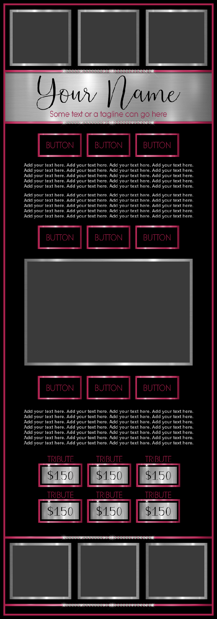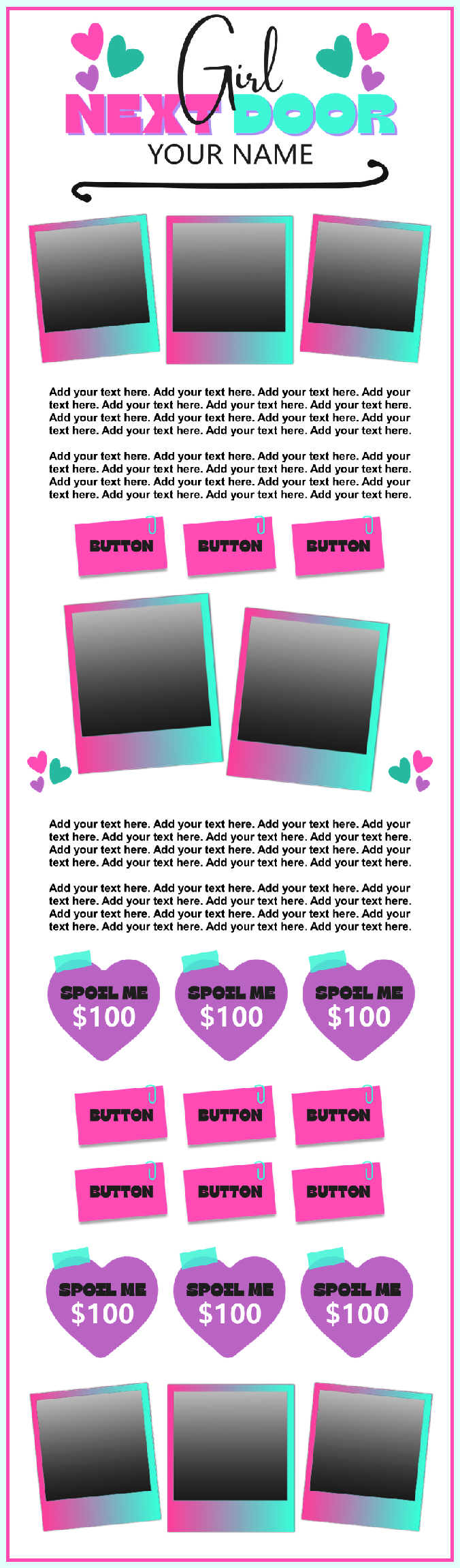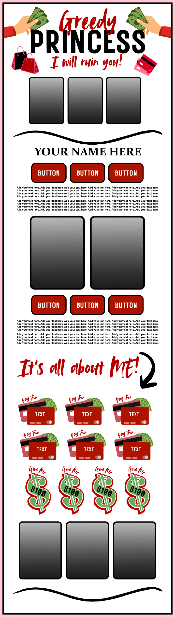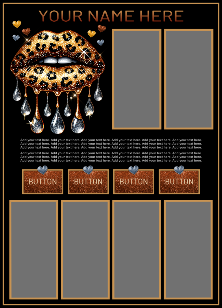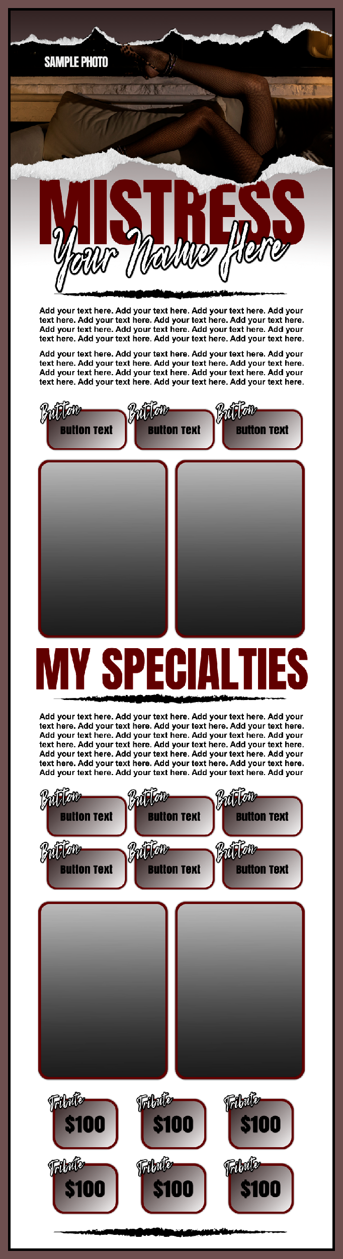Pre-Made Niteflirt Templates Photos displayed on the template preview are sample images only. They will be replaced with your photos. Additional buttons and/or photos are $2.00 each if requested at the time of purchase. Animated Buttons will be more. SOLD*Black and Bright - $35EXTRA KINKY PRINCESS - $35Submissive Girl - $47Retro Style - $47Brighten Up - $32Mistress Bold - $42Half n Half - $38Girl Next Door - $45Greedy Princess - $48Spoiled Brat - $45Naughty GF - $32T25 - Golden - $25T25 Gold Lips - $25Pinky Peachy - $38Hint of Pink - $42Sexy Lips and Hearts $38Silver Blue - $38Starry Black $38Simple Kiss - $38T25 Blue - $25Layer It 2 - $35Diamond Rows - $45T25 wcDark - $25Painted Daisy - $40celestial sky Red - $38Wild - $42T25 Dots - $25Pink and Gray - $42Celestial Sky Blue - $38Just Simple 1 - $38HOTWIFE $30T25 Boho - $25Silver Pink - $38Mistress Red - $45Pink Glitz $35Peach n Blue $35Heart Swirls - $35Painted Flowers - $40Layer It 1 - $35Grunge Heart 2 - $30Grunge Heart $30just simple 2 - $35Checked - $42Hearts n Stars - $30confessions - $38HOMEWRECKER - $35Midnight purple - $42Pay and Obey - $45Autumn Flowers - $42Sparkle Allure $38Spotlight - $45pm1 - $38SS-Peach Pink - $48Slightly Vintage - $38Silver and Golden $30Glittery Pink - $43PM12 - $38Purple Haze $43Tropical Fire - $38Sweet Pinks $38Purple Bokeh - $38Pretty Blues - $33PM2 $32Daisy Blue $32Hippie Style $35Simply Cherry $30Certified Bad Girl $35PM-Summer Kisses $33PM - Princess Castle $28PM Sensual Mistress $45PM Mistress Pink $38PM5 $35PM Expensive $35PM4 $28Chalkboard Princess $38pm6 $38Your Goddess $35PM Black and Pink $35Graffiti 2 $48Classy Bitch $38Splashed 1 $43PM Lips on Black $35PM15- 1 $35Splashed 2 $43PM Blue Bliss $35Desert Sunset $35Scrappy Style Flower $45sln purple $30PM Blue Abstract Kiss $35sln kiss - $32PM XXX Princess $38sln mint $30sln stars $30Bubblegum Babe $38sln cotton candy $30White Night $32Softly Pink - $32STAR CLUSTER $32PM Strawberry $43Just blue and white $35All in pink - $40sln flower - $35Arched - $35PM Whimsy $40PM Pinned _$38PM Sissy Journey $45PM-Sweet Girl - Orchid - $35PM-Sexy Cougar $25PM11 $42minty peach - $32SL - Bright Blue _$42PM Naughty little Slut $35 / SALE $2590s Vibe -$50vintage textured $38Scrappy Hawaiian $32Lazy Blues - $32Golden Princess $38Green Goddess $38Classy Bitch $38Haze - $35Sl - Pink Blue - $38Pink Gold Grunge -$42Silver Red Gold - $48Summer Splash - $38G22 - Purple - $35G22 - Pink -$35TOP ROW - $4518L-Pink - $40Cherry Time $48Lock and Key - $43PM BP $35PM8 $40PM5 $38Desert Sunset $38STAR CLUSTER $35Pink Curves -$35Red Gold Burst $35Sexy Sparkles- $35Rich Girl $40