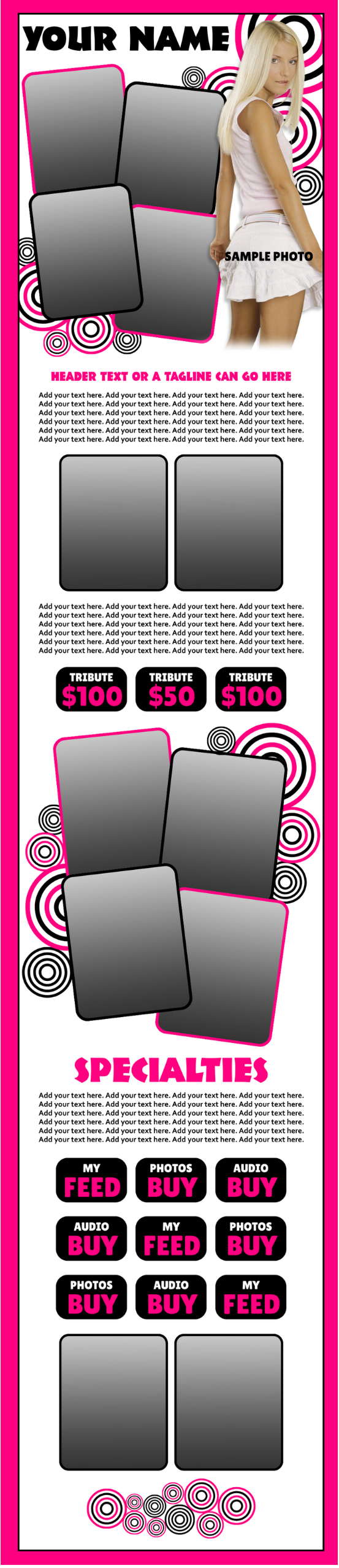 Fun, sexy, flirty, pre-designed templates for your Niteflirt listings. Be sure to scroll all the way through to see all my pre-made templates!